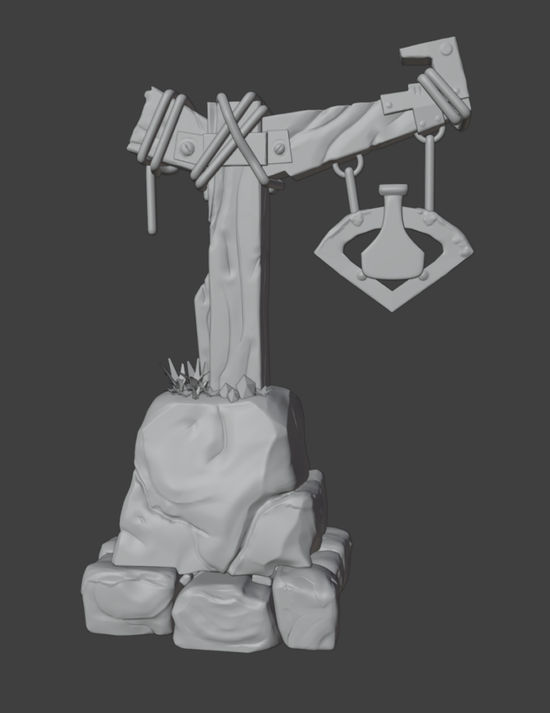 This Project required a very high level of detail when sculpting. By doing this, texturing is made significantly easier, allowing for a faster workflow and more believable details like cracks and wood grain.